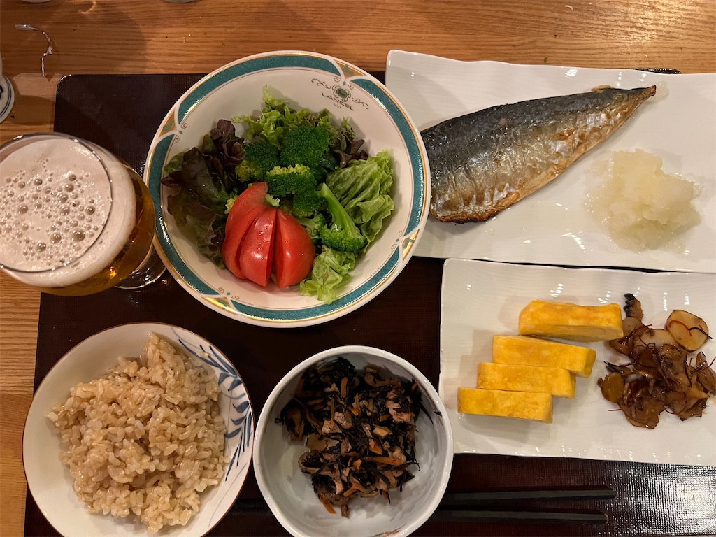 卵を数日食べてないような気がして卵焼き、菊芋と豚肉のきんぴら、ひじきの煮物など
