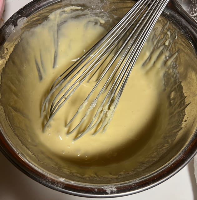 粉っぽさがなくなるまで混ぜてホットケーキの材料の出来上がりです