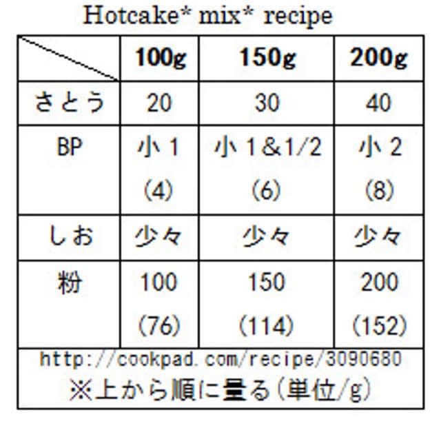 実はこのホットケーキミックスのレシピはなんとクックパッドでも出てきます