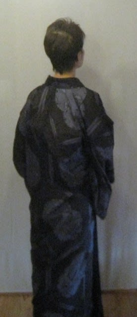 コートは母の大島紬を解いて 単の対丈コートに直したもの