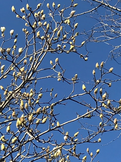 帰り着くと、我が家のモクレンの蕾が一気に膨らんでいます