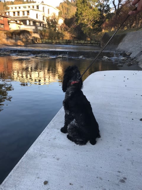 今朝は鯉にダイスカットした干し芋をあげたら、食いつきがよくて、ベスも面白そうに見ていました
