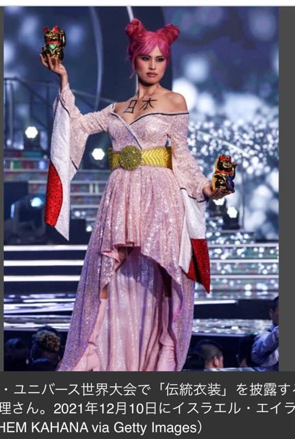 上は、ミスユニバースの日本代表の伝統衣装😱