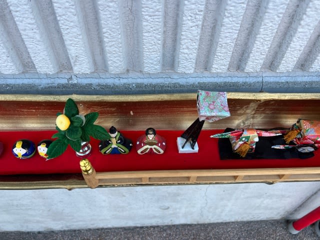 ベス🐕🦺との散歩で見かけたカフェの外のミニお雛様