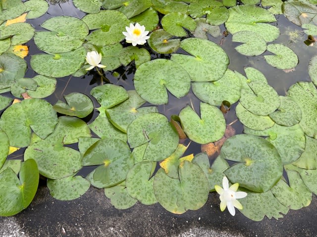 庭の池の睡蓮はまだ蕾も見つからず