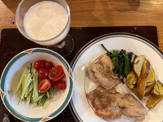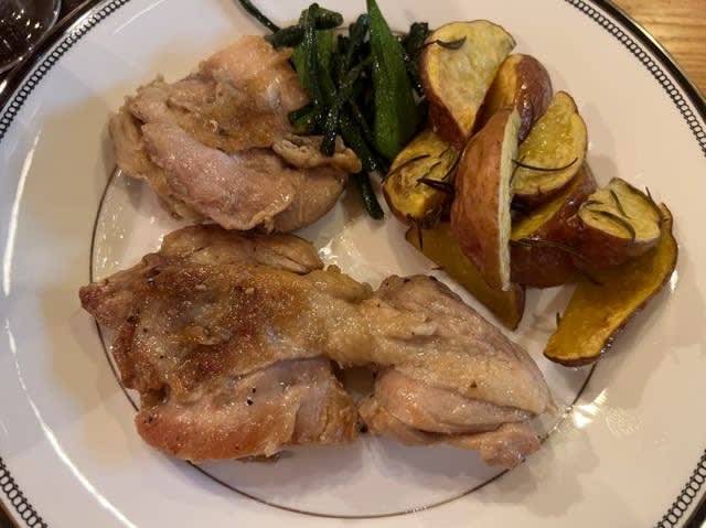 ○ 月曜日は鶏モモ肉のフライパンソテー(トリュフ塩と胡椒で焼いて)