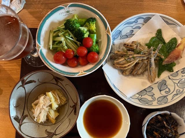 ○ 水曜日は今が旬のキビナゴをお刺身にしようと買ったのに、病院で遅くなり、天ぷらに変更