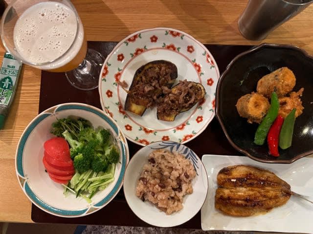 ○ 昨日の夕食は鰯のロールフライ、鰯の蒲焼き、茄子の田楽