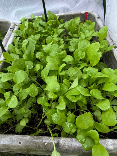 2024-10-25 今日いち-2024年10月25日 ベランダ園芸から家庭菜園へ 防虫ネット二重掛けで育成中のルッコラ1週間でかなり成長初詰みしてサラダへ虫は寄せ付けていないけど、雨か曇天の1週間だったと、トトさんの言葉確かにルッコラももっとお日様欲しそう