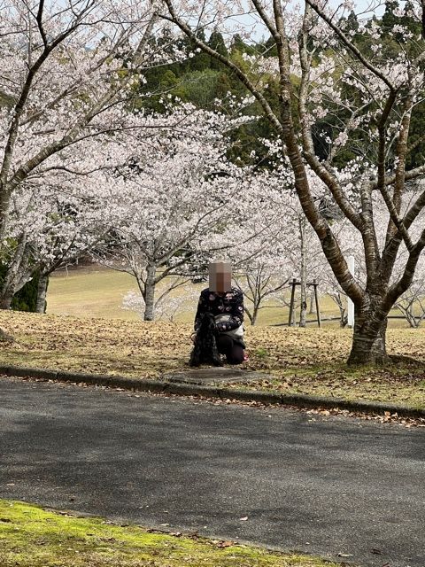 31日平和公園の桜をバックにベス🐕🦺とワンショット