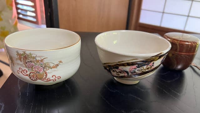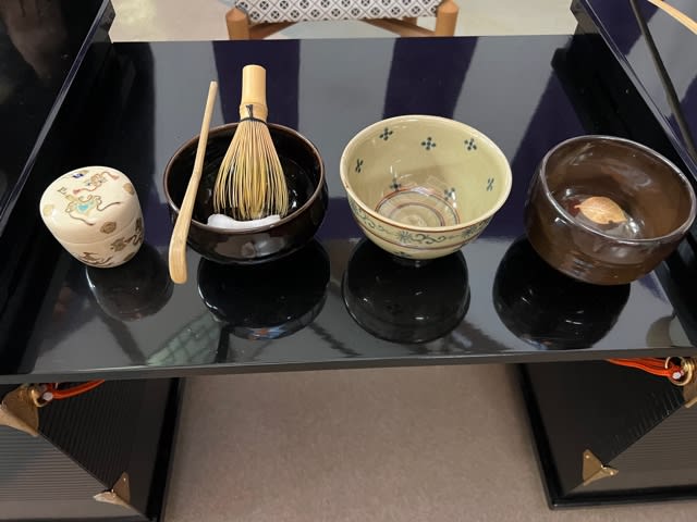 先代作の主茶碗、当代作の蓋置き(今年の干支と琵琶の絵付け・・・・写真なし)