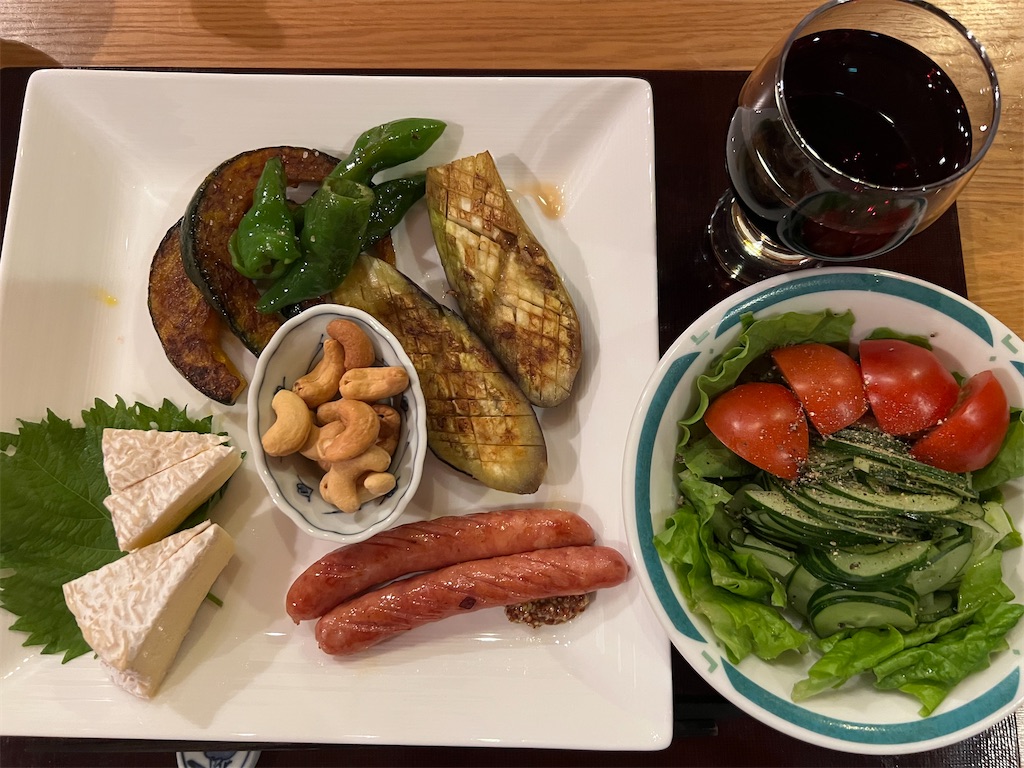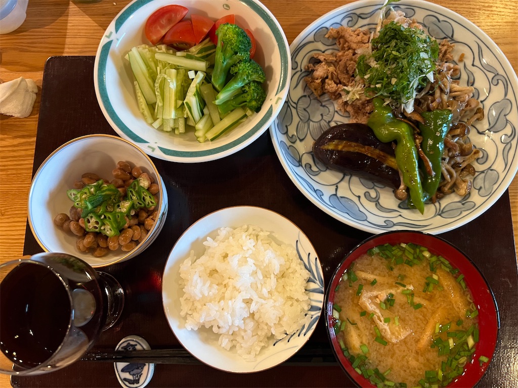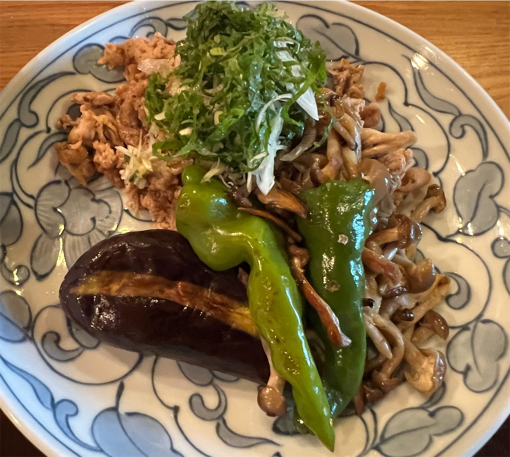 ○ 日曜日は、茄子と豚肉の味噌炒め、山芋の辛子明太子和え、サラダなど