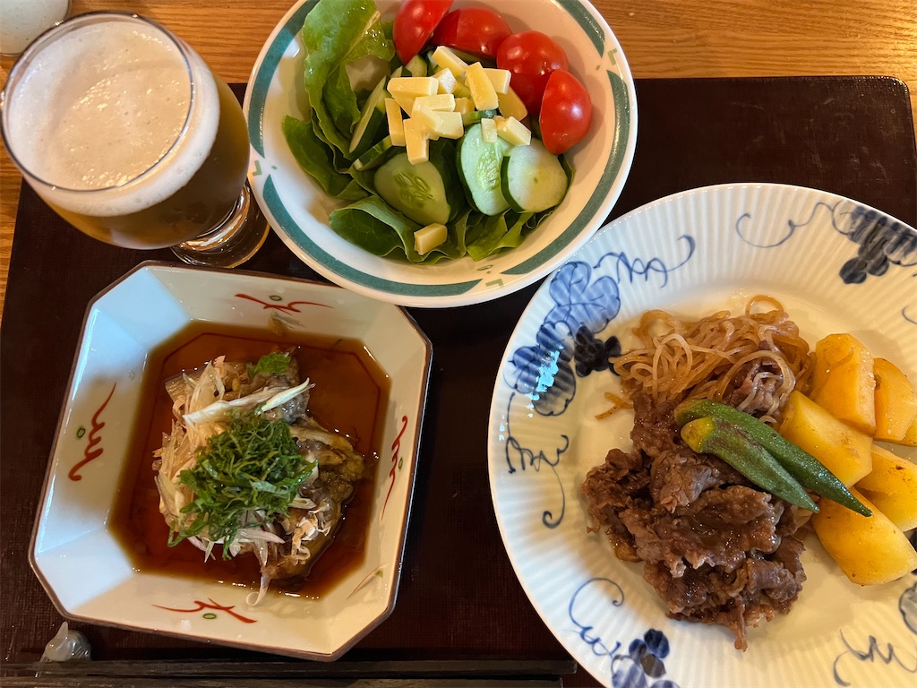 ○ 久しぶりに買い物して、肉じゃがと焼きナス