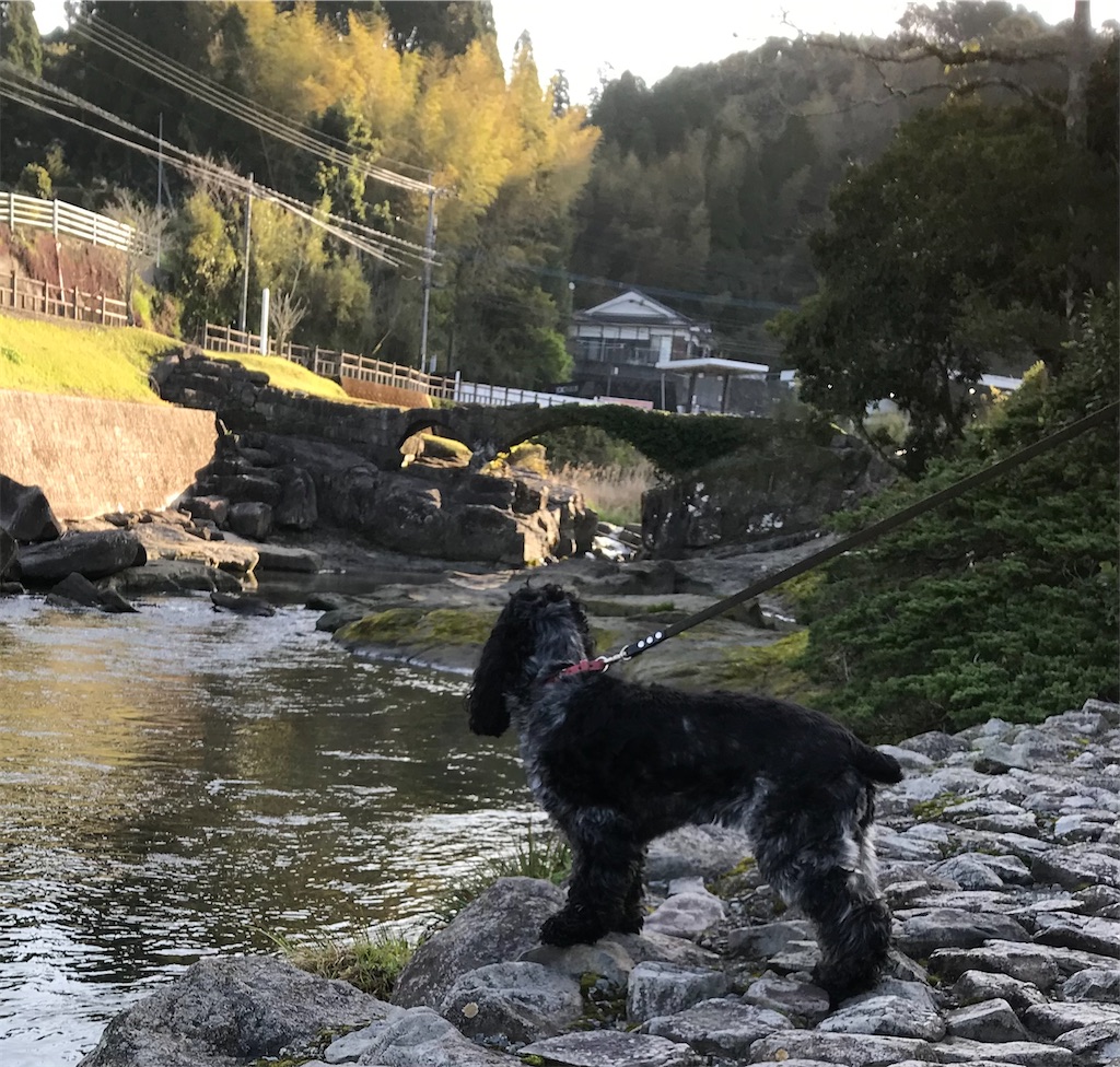 散歩で時々降りる川原 その向こうの眼鏡橋(石橋)も増水して全く姿を消していたという