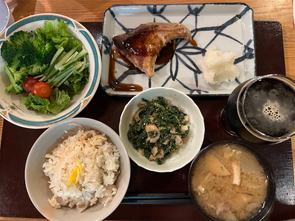 ご飯は菊芋の炊き込みご飯(菊芋、油揚げ、生姜、エノキダケ)