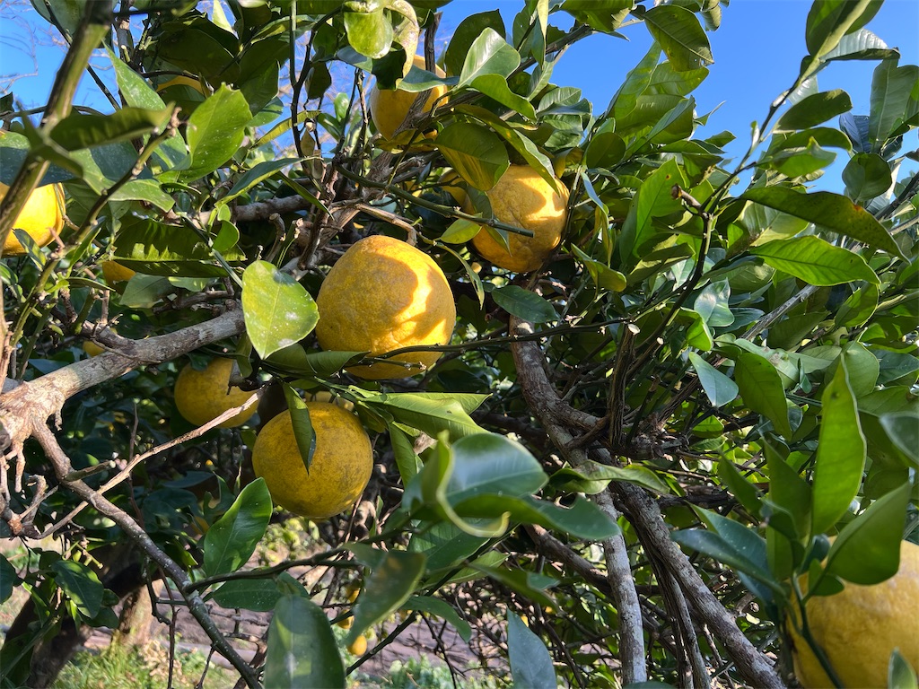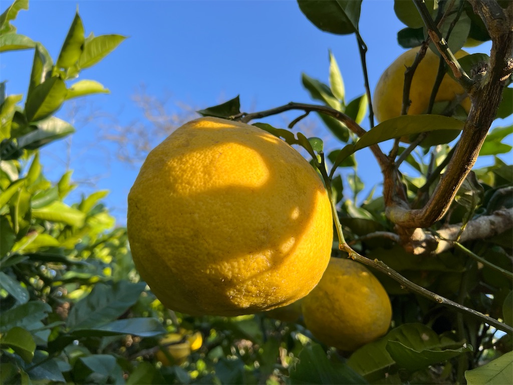 でもサワーポメロの実がしっかり顔を出した