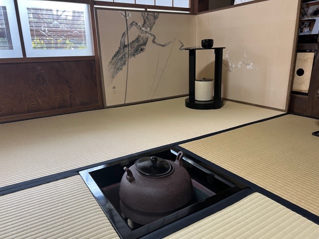 稽古始めで、日曜日の初釜で使われた釜がかけてありました