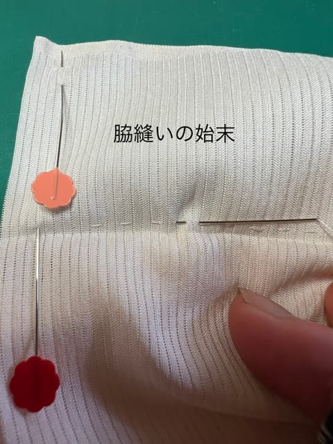 ④ 脇縫いは、解いた途中から重ね縫いをして