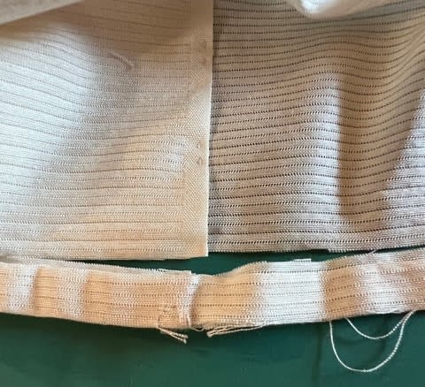裾をカットすると、脇や背縫いの縫い代やくけも解けてくるので、縫い直しになります