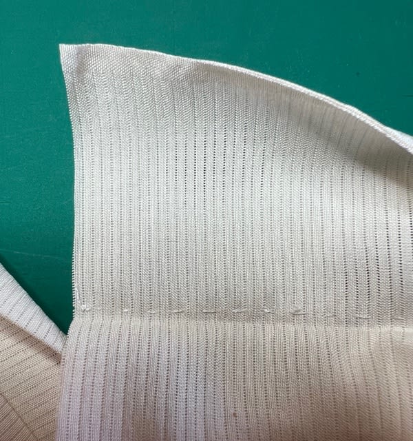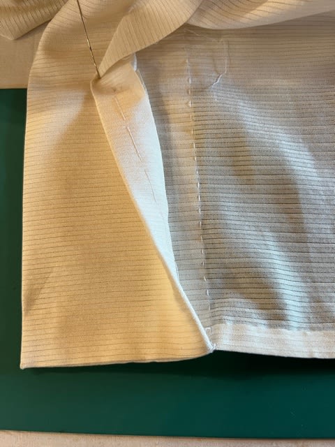 ⑤ 縫い代を耳ぐけして、裾の縫い代をしつけ縫い