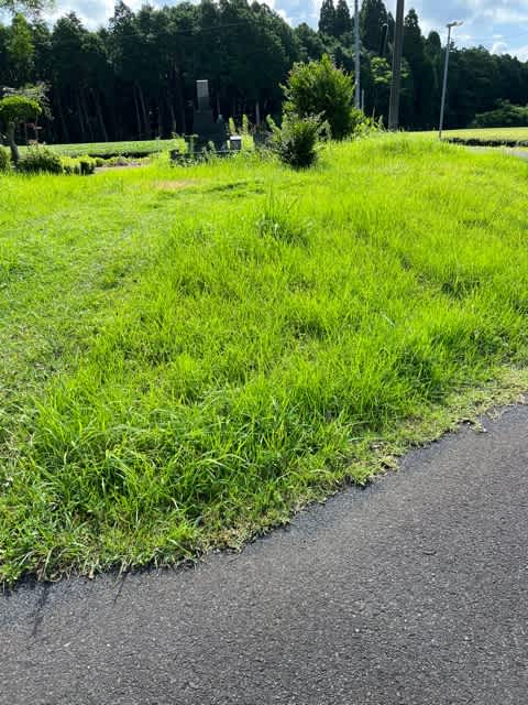 手前の草地は共同墓地の共有部分で駐車場として使っているのですが、ここも草ぼうぼう