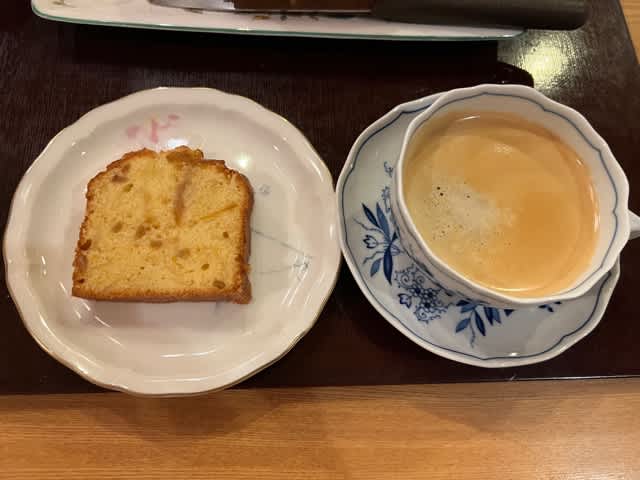 食後は、まだ少し温かいパウンドケーキと珈琲で