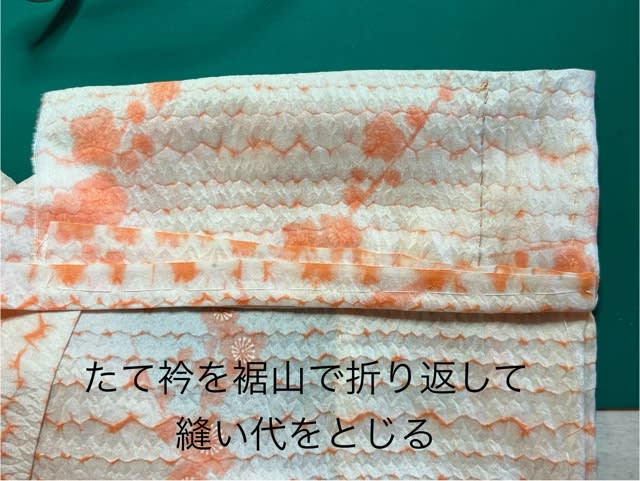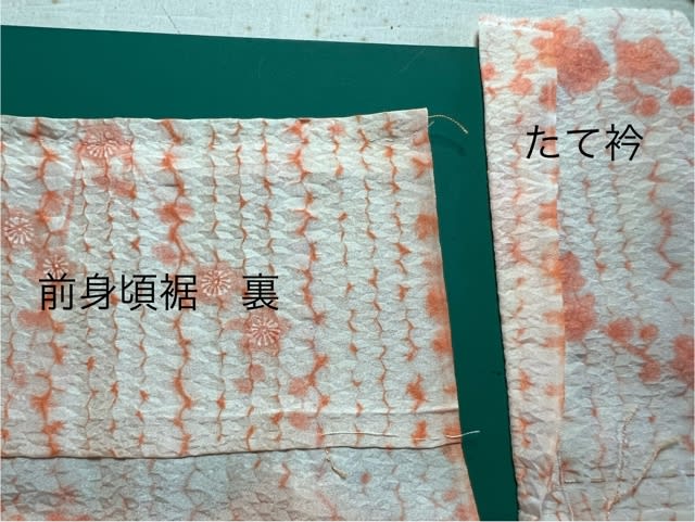 3 縫い糸を取ると、やっとたて衿と前身頃裾が別れました(裾から20㎝ほど)