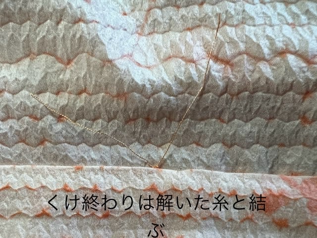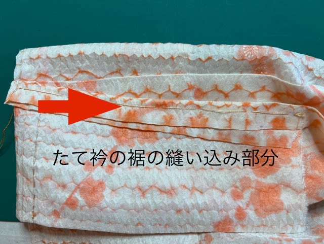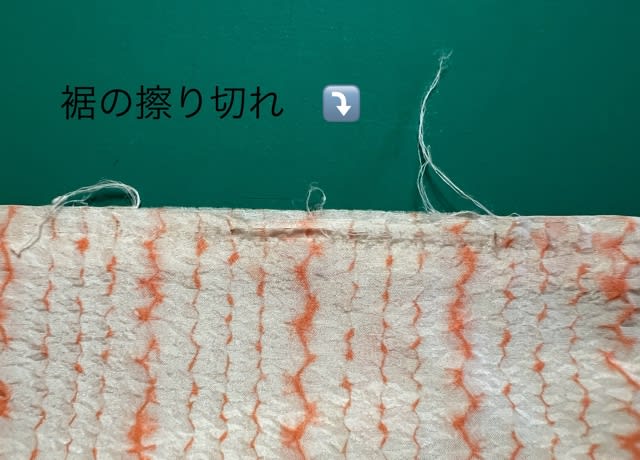 袷の着物なら裾回しのフキ部分、長襦袢も同じ場所は、歩くたびに足首や足袋に当たって擦れるので、擦り切れます