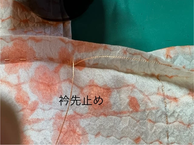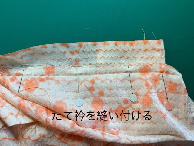 ここまでして、やっとたて衿と身頃分を縫い合わせ
