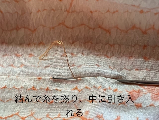 11 止めた後の糸は撚り合わせて2cmほどにカット