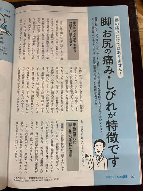 で、雑誌を読んでいくと、症状は脊柱管狭窄症の神経根型になるのですが