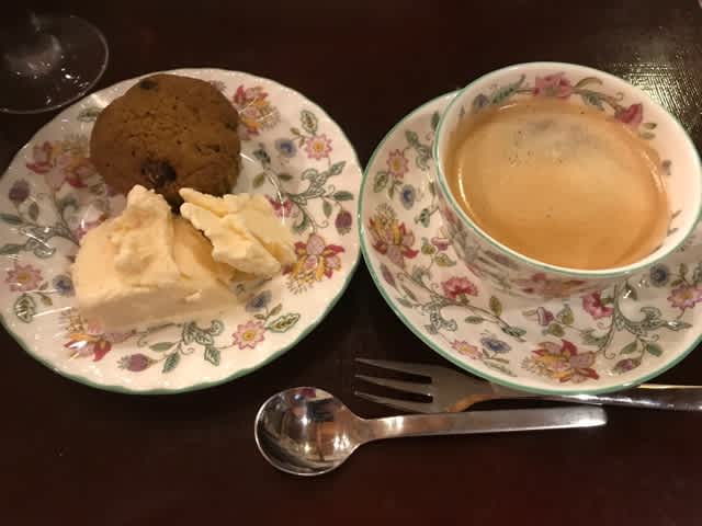 食後は、珈琲と焼いた抹茶のバターケーキとバニラアイスでした