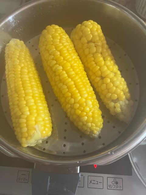 お昼はスムージーととうもろこし🌽